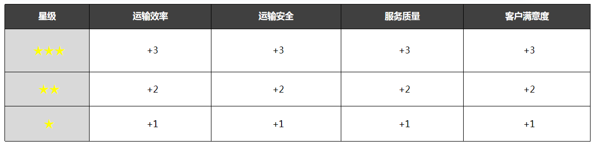 评价分数:一星到三星,三星为最高分3分,一星为最低分1分,通过四个维度对司机进行评分,系统计算所有评价的平均值,计入司机综合评分,结果公示在门户网站中。